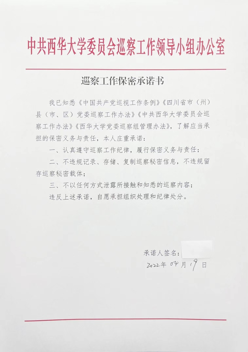全体巡察干部签订《巡察工作保密承诺书》